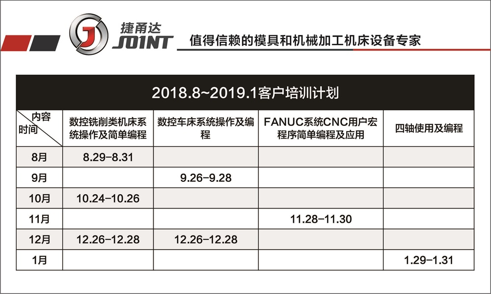 2018年8月至2019年1月深圳市拓智者科技有限公司針對捷甬達機床用戶及捷甬達經(jīng)銷商開展免費培訓課程。由資深專業(yè)講師授課及實踐指導,助您的職業(yè)之路添姿增彩!