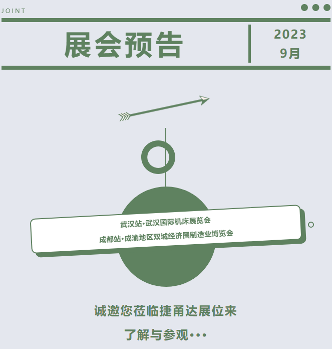 歡迎您到捷甬達(dá)展位來了解與參觀!JM2023第26屆濟(jì)南國際機(jī)床展覽會(huì);CWIEME2023西部制博會(huì);CCiME2023...