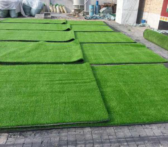 施工工藝: A.涂膠:要求用刷子在其表面涂刷厚薄均勻,底布涂上膠水,涂膠時應(yīng)分別涂于被粘接的兩粘接面上。 B.粘合:一般 以涂膠后10-30分鐘后進(jìn)行粘接,粘接時要求一次性對準(zhǔn)粘牢。 C.加壓:在粘合好后,用專用的橡皮錘從粘接處向兩邊用力錘實粘接更牢固。 D.固化:其固化時間一般為三天,檢測最終 強(qiáng)度一般為十天。因此,在固化期間需密切注意對其維護(hù),避免過于暴曬、水浸和移動,以達(dá)到粘接的最佳狀態(tài)。 E.粘接后在未撒石英砂和橡膠顆粒前,對場地的草皮裁切的碎片進(jìn)行清潔處理。 石英砂及彈性顆粒鋪裝工藝 F灌沙工藝:草苗內(nèi),用石英砂進(jìn)行固定草苗,使草苗不倒伏,灌沙到草苗內(nèi),在草苗表面鋪撤橡膠顆粒,鋪撒要均勻。 G人工草皮場材確實安裝完成后,方可鋪設(shè)石英砂及橡膠顆粒。 H石英砂鋪裝完成后需使用帶有硬質(zhì)毛刷來回鋪刷使石英砂下落充分密實。