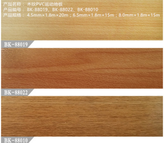 PVC運(yùn)動(dòng)地板:是采用聚氯乙烯材料專門為運(yùn)動(dòng)場(chǎng)地開發(fā)的一種運(yùn)動(dòng)地板,是以聚氯乙烯及其共聚樹脂為主要原料,加入填料、增塑劑、穩(wěn)定劑、著色劑等輔料,在片狀連續(xù)基材上,經(jīng)涂敷工藝、經(jīng)壓延、擠出、擠壓工藝生產(chǎn)而成。一般是由多層結(jié)構(gòu)疊壓而成,一般有耐磨層(含UV處理)、玻璃纖維層、彈性發(fā)泡層、基層等。PVC運(yùn)動(dòng)地板應(yīng)用非常廣泛,是奧運(yùn)會(huì)等各項(xiàng)國(guó)際性比賽都指定PVC彈性運(yùn)動(dòng)地板。